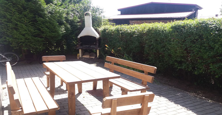 Teren jest ogrodzony i posiada miejsca parkingowe dla samochodów osobowych. Dla dzieci przygotowaliśmy miejsce do zabawy, a dla dorosłych teren do wypoczynku i wspólnego grillowania.